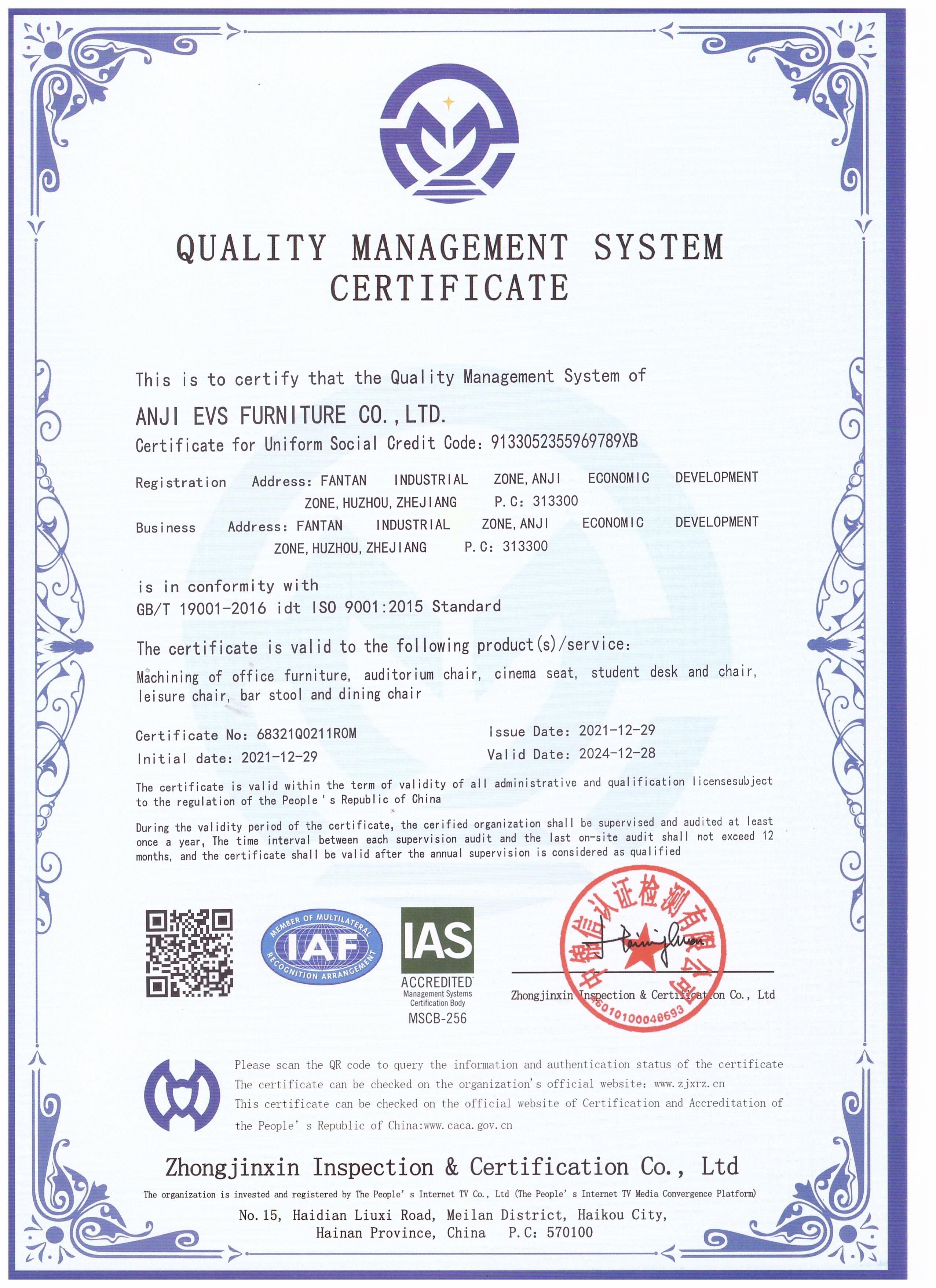 We insist that quality is the headstone for developing.All the products execute the test standard of Europe EN12520,according with the third party authority test standard like BV,SGS.Control strictly the quality from raw material,semi-finished products to finished products,covering every process to make prevention first effectively.On internal management,company always pursues excellence and execute the management system standard of ISO9001,2015.ISO14001:2015,OHSAS18001.and has got certified.